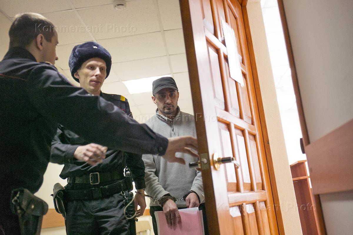 Обвиняемый в убийствах Арсен Байрамбеков (справа) в здании Верхнепышминского городского суда.