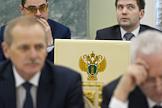 Совместное заседание коллегий Генеральной прокуратуры России и Министерства труда и социальной защиты России в Генеральной прокуратуре России. Министр труда и социальной защиты России Максим Топилин во время заседания.