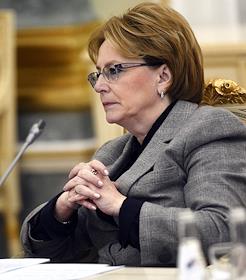 Совместное заседание коллегий Генеральной прокуратуры России и Министерства труда и социальной защиты России в Генеральной прокуратуре России. Министр здравоохранения России Вероника Скворцова во время заседания.