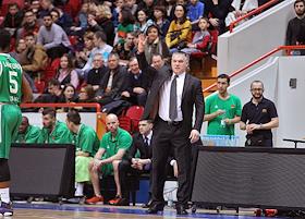 Евролига по баскетболу 2016-17. Матч между командами УНИКС (Россия, Казань) – "Анадолу Эфес" (Турция, Стамбул). Главный тренер БК "Анадолу Эфес" Велимир Перасович во время матча.