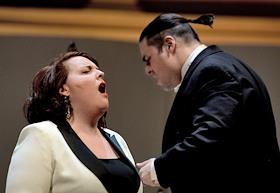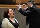 Звезды мировой оперы в Москве. Концерт канадской оперной певицы Мари-Николь Лемьё прошел в Концертном зале имени П.И.Чайковского. Канадская оперная певица Мари-Николь Лемьё (слева) и канадский дирижер Жан-Мари Зейтуни (справа) во время концерта.