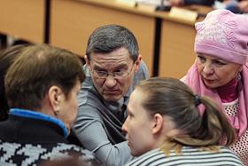 Первый заместитель министра юстиции Республики Татарстан Рустем Загидуллин на встрече пострадавших вкладчиков Татфондбанка и ИнтехБанка с представителями правительства и налоговой службы Республики Татарстан в Торгово-промышленной палате.