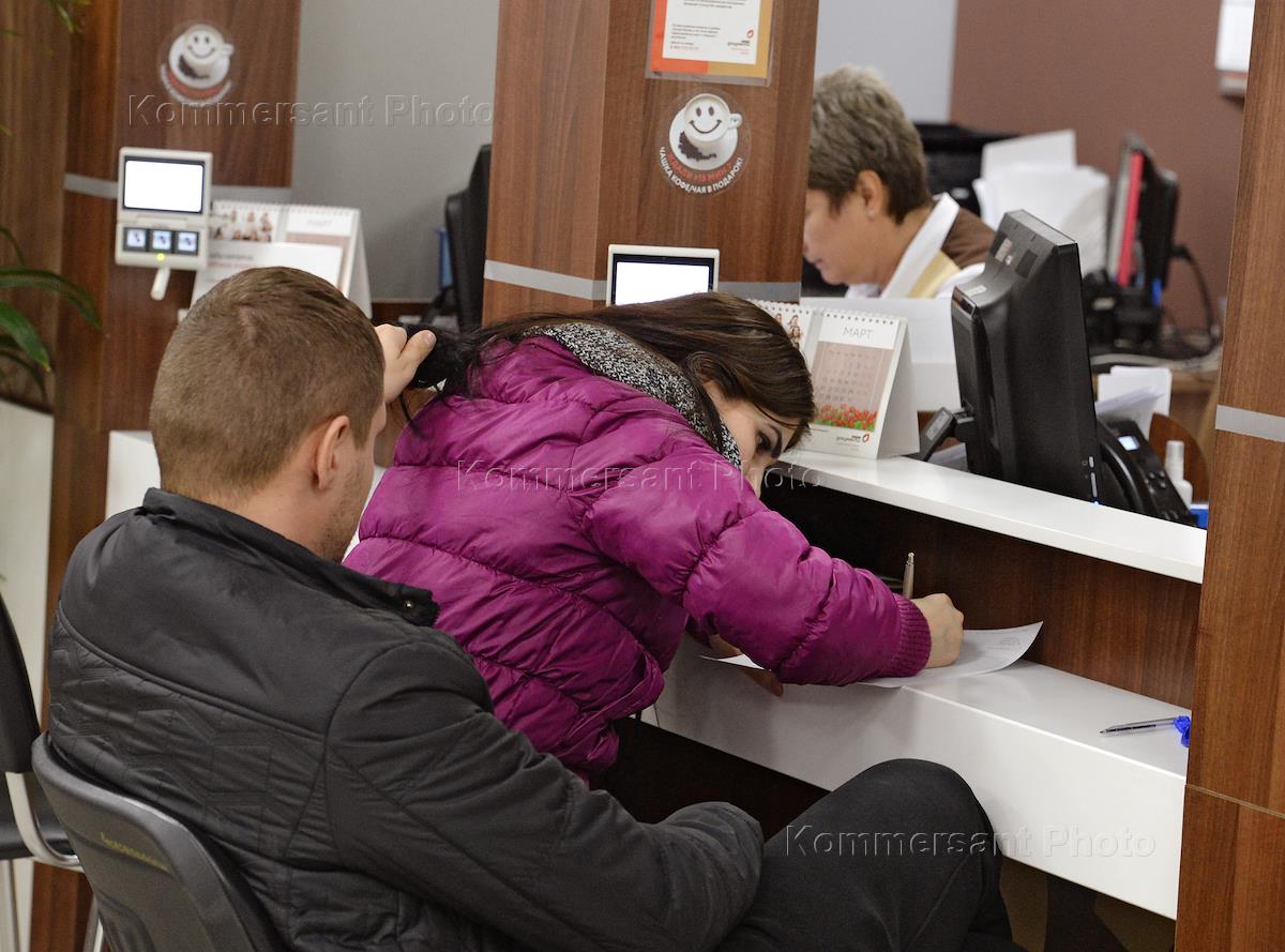 Центр предоставления государственных услуг "Мои документы" района "Тверской". Посетители во время обслуживания в Центре.