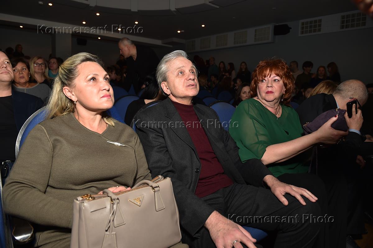 XV ежегодная церемония вручения театральной премии Союза театральных деятелей (СТД) России "Гвоздь сезона" в Театральном центре "На Страстном". Продюсер Михаил Друян (слева) и актриса Анна Чиповская (в центре) во время церемонии.