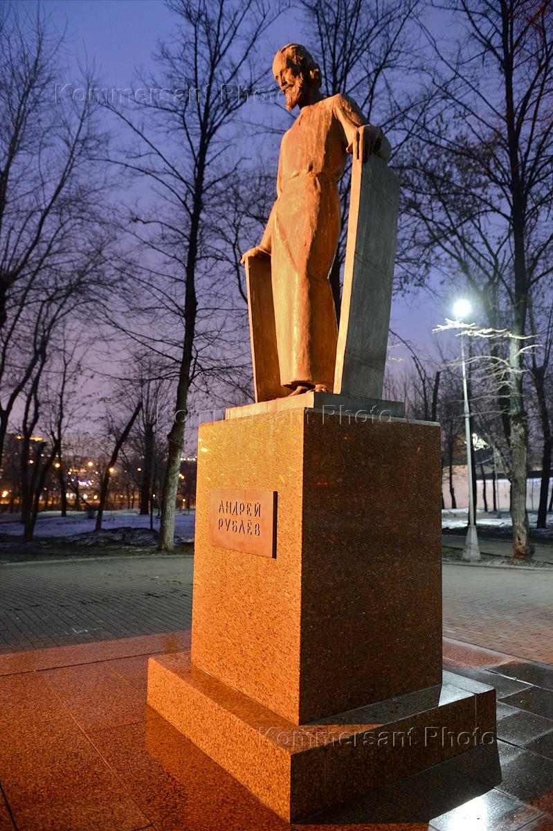 Памятник русскому иконописцу Андрею Рублеву у здания Центрального музея древнерусского искусства имени Андрея Рублева.