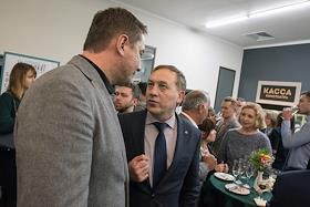 Закрытый показ фильма "Джеки" чилийского режиссера Пабло Ларраина прошел в рамках совместного проекта ИД "Коммерсантъ" и киноконцерна "Ленфильм" "Кино с "Коммерсантом" в зале киноконцерна. Генеральный директор ИД "Коммерсантъ" в Санкт-Петербурге Максим Ефимов (справа) и генеральный директор "Киностудии Ленфильм" Эдуард Пичугин (слева) перед началом показа.