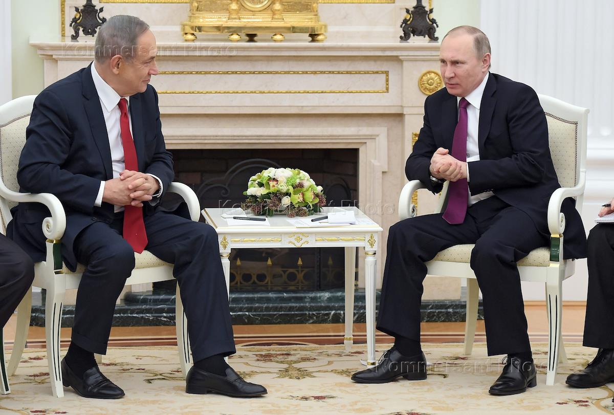 Премьер-министр Израиля Биньямин Нетаньяху (в центре)во время встречи с президентом России Владимиром Путиным.