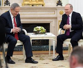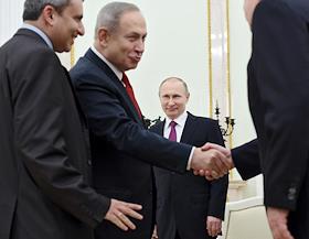 Премьер-министр Израиля Биньямин Нетаньяху (в центре)во время встречи с президентом России Владимиром Путиным.