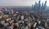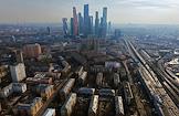 Виды Москвы. Пятиэтажные дома в Пресненском районе Москвы вблизи делового центра "Москва-Сити".