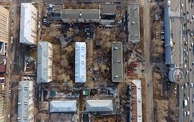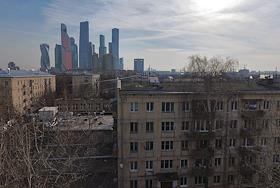 Виды Москвы. Пятиэтажки в Центральном административном округе (ЦАО) вблизи делового центра "Москва-Сити".