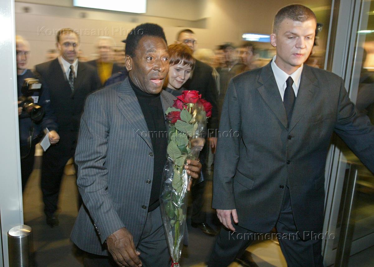 Brazilian football legend Pele (left) arrived in Moscow airport "Domodedovo" with an official visit. He was invited by the "Cacique" company and "Cafe Pele" trade mark.