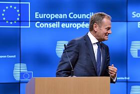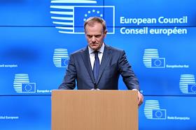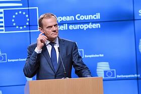 Председатель Европейского совета Дональд Туск во время выступления на социальном форуме "День Женщин".