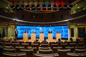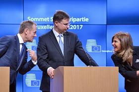 Председатель Европейского совета Дональд Туск (в центре) во время работы социального форума "День Женщин".