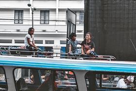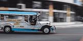 Виды Манилы. Пассажирский автобус едет по городской улице.