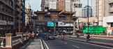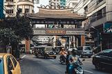 Виды столицы Филиппин Манилы. Арка в виде пагоды над оживленной проезжей частью.