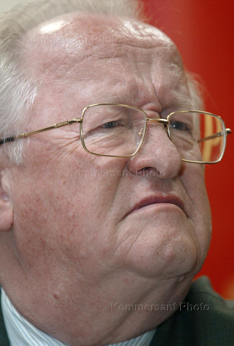Бывший председатель Центрального Банка России Виктор Геращенко на конференции коалиции народно-патриотических сил Сергея Глазьева. Конференция состоялась в гостинице "Золотое кольцо".