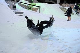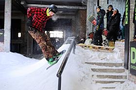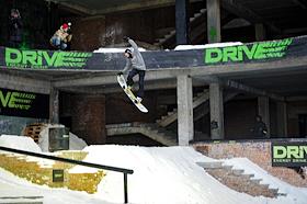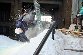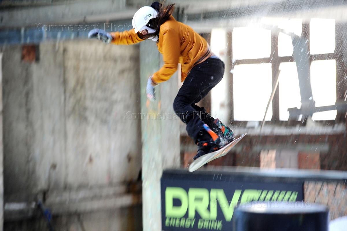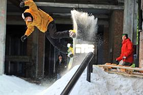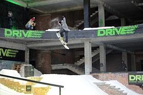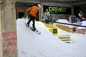 Соревнования Drive Urban Snowboard в недостроенном ДК "Сибсельмаш" на площади Карла Маркса в Новосибирске.