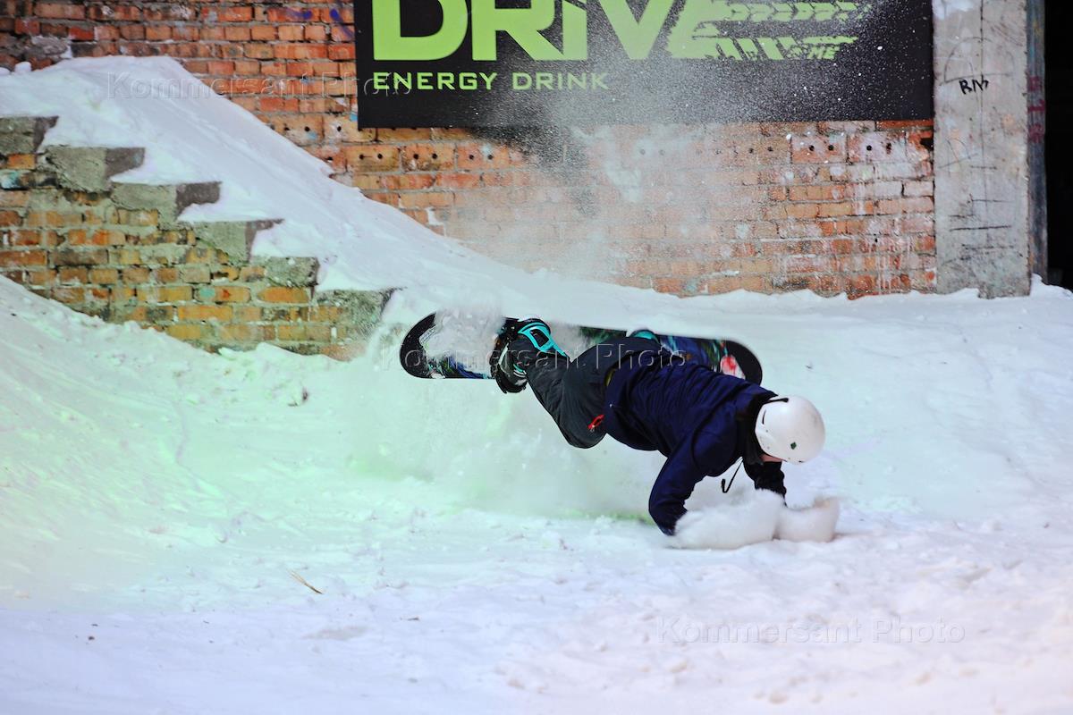 Соревнования Drive Urban Snowboard в недостроенном ДК "Сибсельмаш" на площади Карла Маркса в Новосибирске.
