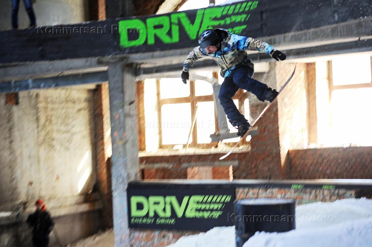 Соревнования Drive Urban Snowboard в недостроенном ДК "Сибсельмаш" на площади Карла Маркса в Новосибирске.