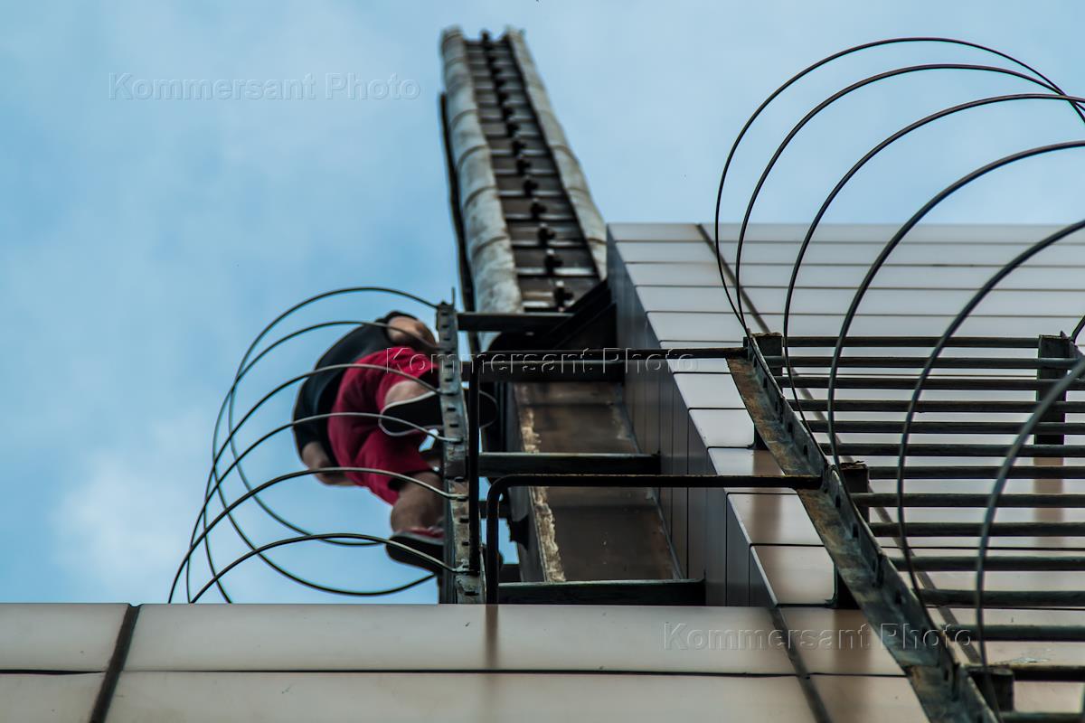 Крыши Шанхая. Руфер во время подъема на небоскреб.