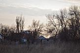 Виды поселка Коминтерново, разделенного между Вооруженными силами Украины (ВСУ) и ополчением ДНР. Территория обстреливаемая ВСУ. Агроцех №7.