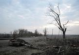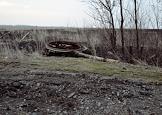 Виды поселка Коминтерново, разделенного между Вооруженными силами Украины (ВСУ) и ополчением ДНР. Башня украинского танка.