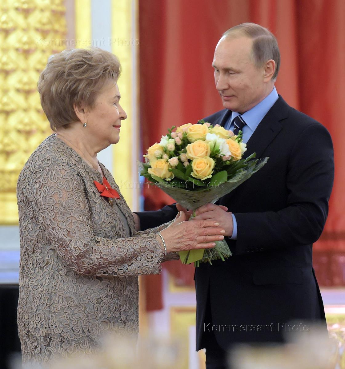 Прием по случаю 85-летнего юбилея вдовы первого президента России Бориса Ельцина Наины Ельциной прошел в Александровском зале Большого Кремлевского дворца. Президент России Владимир Путин во время приема. Президент России Владимир Путин вручил Наине Ельциной орден "Святой великомученицы Екатерины".