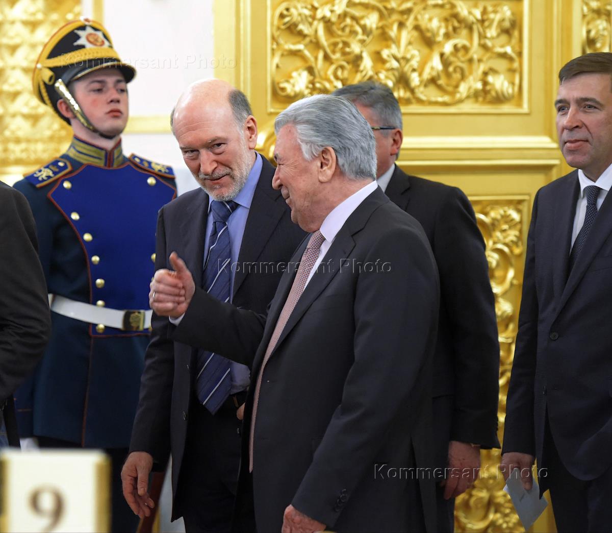 Прием по случаю 85-летнего юбилея вдовы первого президента России Бориса Ельцина Наины Ельциной прошел в Александровском зале Большого Кремлевского дворца. Председатель ВГТРК Олег Добродеев (слева) во время приема.