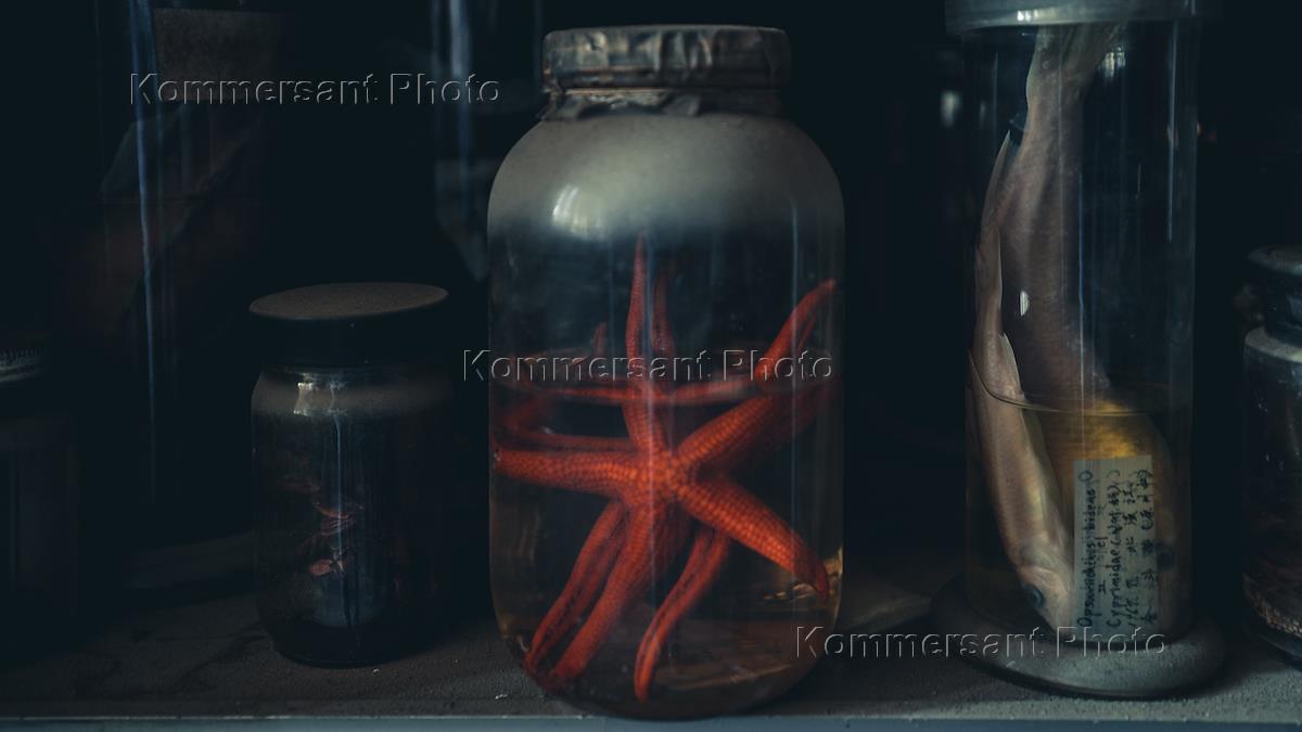 Заброшенная научная лаборатория в пригороде Сеула. Жанровая фотография. Колбы с животными в формалине.