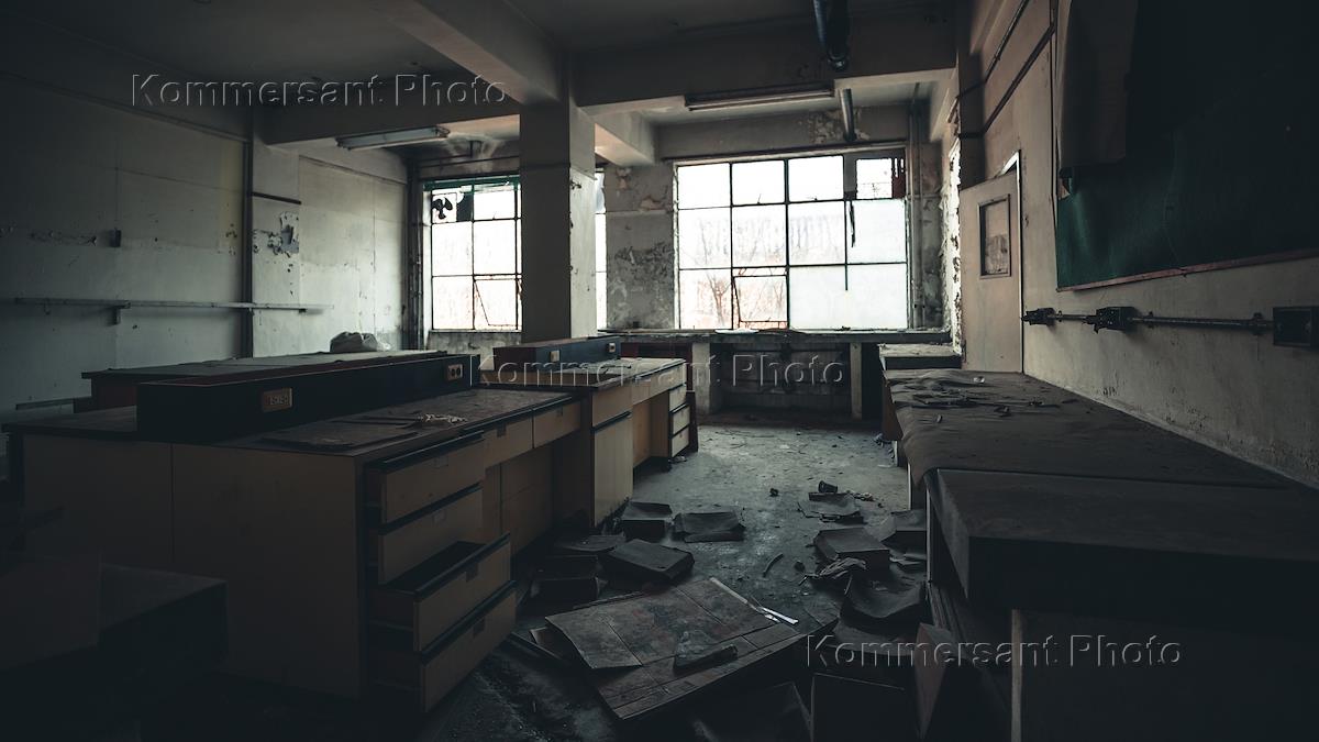Заброшенная научная лаборатория в пригороде Сеула. Жанровая фотография. Рабочие места ученых.