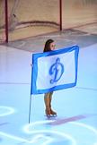 Хоккей. Кубок Гагарина. Динамо (Москва)- СКА (Санкт-Петербург). 4 матч серии. Девушка-черлидер с флагом хоккейного клуба "Динамо" на льду стадиона перед матчем.