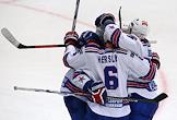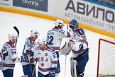 Хоккей. Кубок Гагарина. Динамо (Москва)- СКА (Санкт-Петербург). 4 матч серии. Слева направо: игроки команды СКА Александр Барабанов, Динар Хафизуллин, Евгений Дадонов, Александр Дергачев и Микко Коскинен после матча.