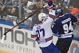 Хоккей. Кубок Гагарина. Динамо (Москва)- СКА (Санкт-Петербург). 4 матч серии. Игрок команды "Динамо" Владимир Брюквин (справа) и игрок команды СКА Евгений Кетов (слева) во время матча.