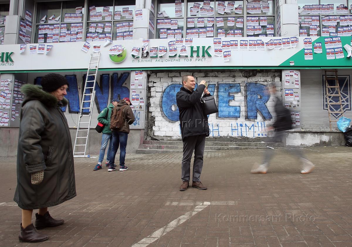 Виды Киева. Отделение Сбербанка, замурованное активистами украинской радикальной организации "Национальный корпус" (бывший "Азов").