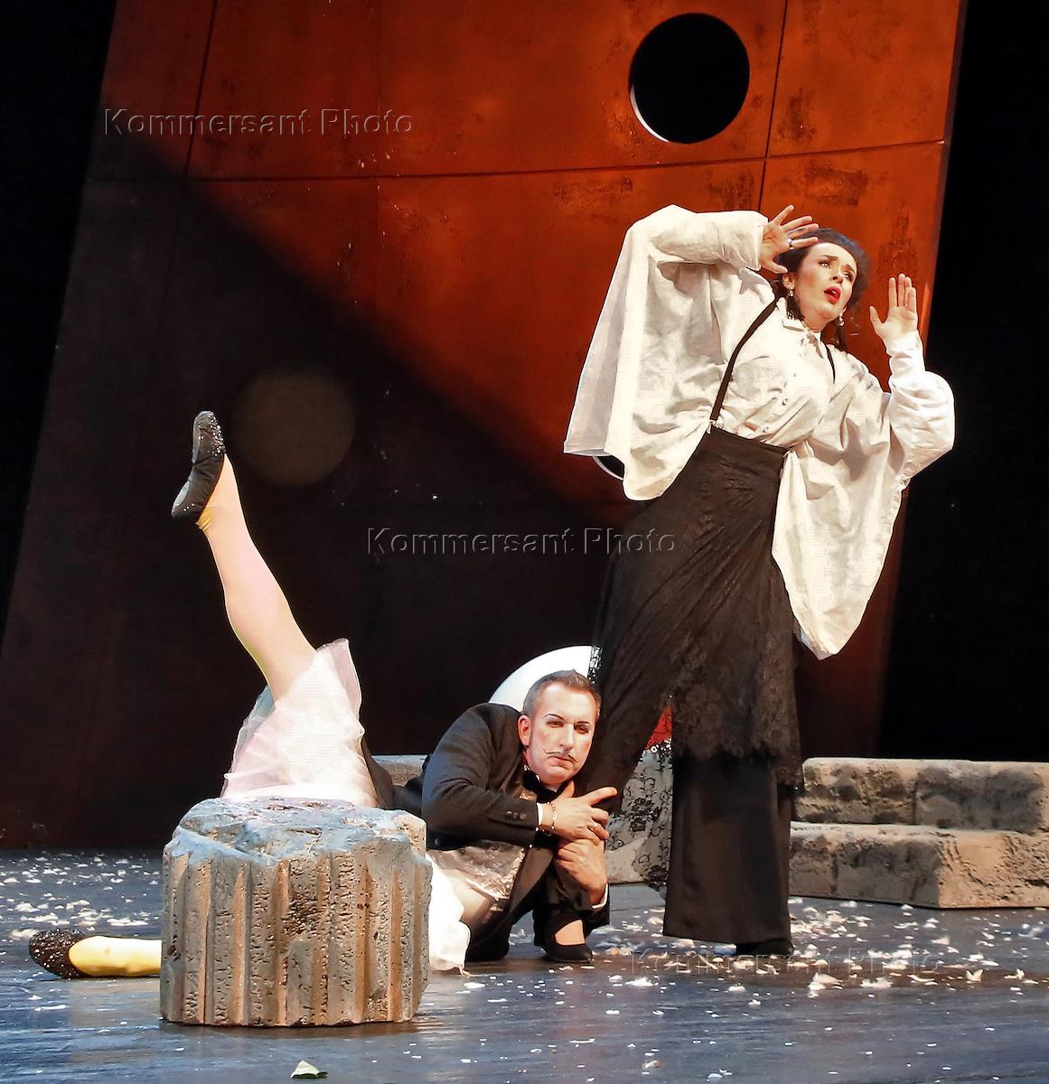 Спектакль "Двенадцатая ночь" по пьесе Уильям Шекспир в постановке режиссера Павла Сафонова на сцене театра "Сатира". Актер Андрей Барило во время спектакля.