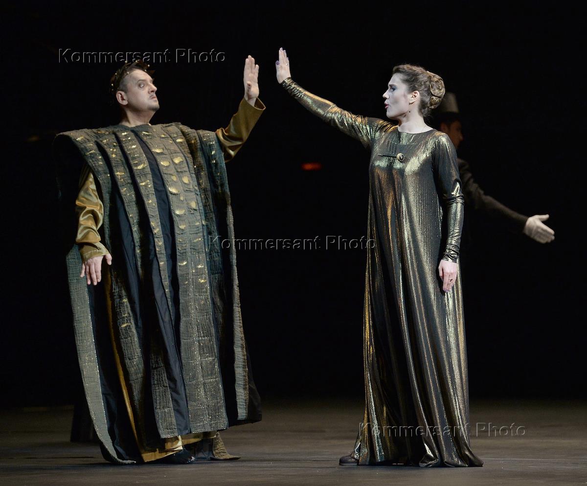 Пресс-показ опер "Эдип-царь" / "Замок герцога Синяя борода" в постановке режиссера Римаса Туминаса на сцене Московского академического музыкального театра имени К.С.Станиславского и В.И.Немировчиа-Данченко. Оперные певцы Наталья Зимина и Евгений Либерман в опере композитора Игоря Стравинского "Эдип-царь".