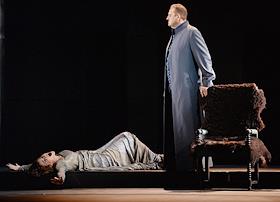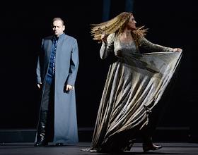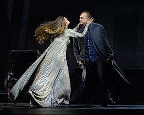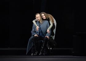 Пресс-показ опер "Эдип-царь" / "Замок герцога Синяя борода" в постановке режиссера Римаса Туминаса на сцене Московского академического музыкального театра имени К.С.Станиславского и В.И.Немировчиа-Данченко. Оперные певцы Роман Улыбин (слева) и Наталья Зимина (справа) в опере композитора Белы Бартока "Замок герцога Синяя борода".