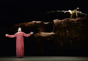 Пресс-показ опер "Эдип-царь" / "Замок герцога Синяя борода" в постановке режиссера Римаса Туминаса на сцене Московского академического музыкального театра имени К.С.Станиславского и В.И.Немировчиа-Данченко. Оперные певцы Наталья Зимина и Евгений Либерман в опере композитора Игоря Стравинского "Эдип-царь".