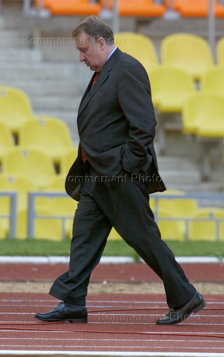 The acting chief coach of the football club "Spartak" Vladimir Fedotov attends the match between "Spartak" and "Torpedo" that was held at the "Luzhniki" stadium.