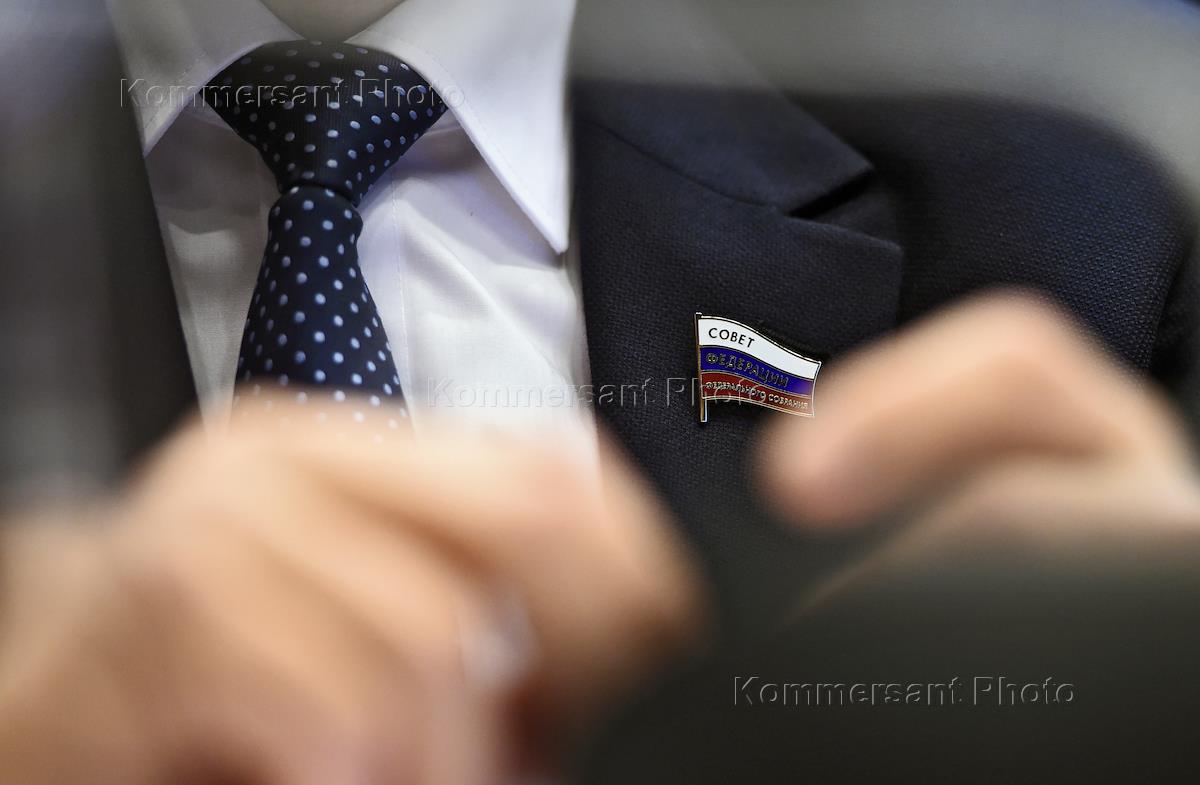 Жанровая фотография. Значок на лацкане пиджака "Совет Федерации Федерального собрания" .