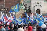 Митинг по случаю третьей годовщины присоединения Крыма к России. Участники митинга с флагами России и ЛДПР на у памятника Минину и Пожарскому на площади Народного единства во время празднования.