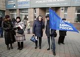 Митинг по случаю третьей годовщины присоединения Крыма к России. Участники с флагом "Единой России" перед началом митинга.
