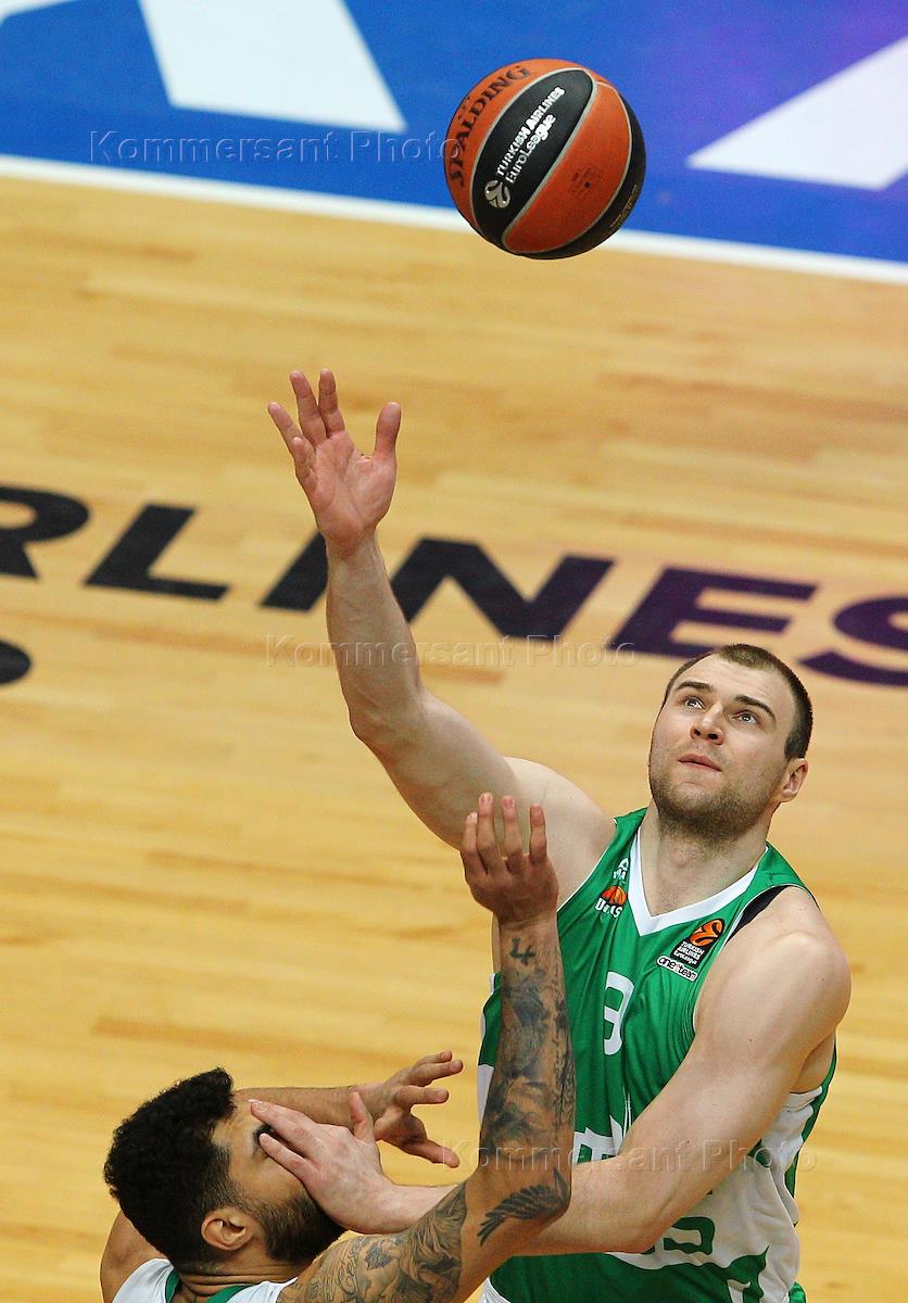 Евролига. Мужчины. Матч УНИКС (Казань) - Жальгирис (Каунас). Игрок команды "Уникс" Евгений Воронов (справа) во время матча.