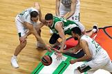 Евролига. Мужчины. Матч УНИКС (Казань) - Жальгирис (Каунас). Игрок команды "Уникс" Артём Параховский (второй слелва) и игрок команды "Жальгирис" Антанас Каваляускас (слева) во время матча.