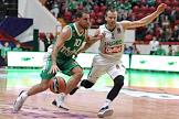 Евролига. Мужчины. Матч УНИКС (Казань) - Жальгирис (Каунас). Игрок команды "Жальгирис" Паулюс Янкунас(слева) и игрок команды "Уникс" Павел Антипов (справа) во время матча.