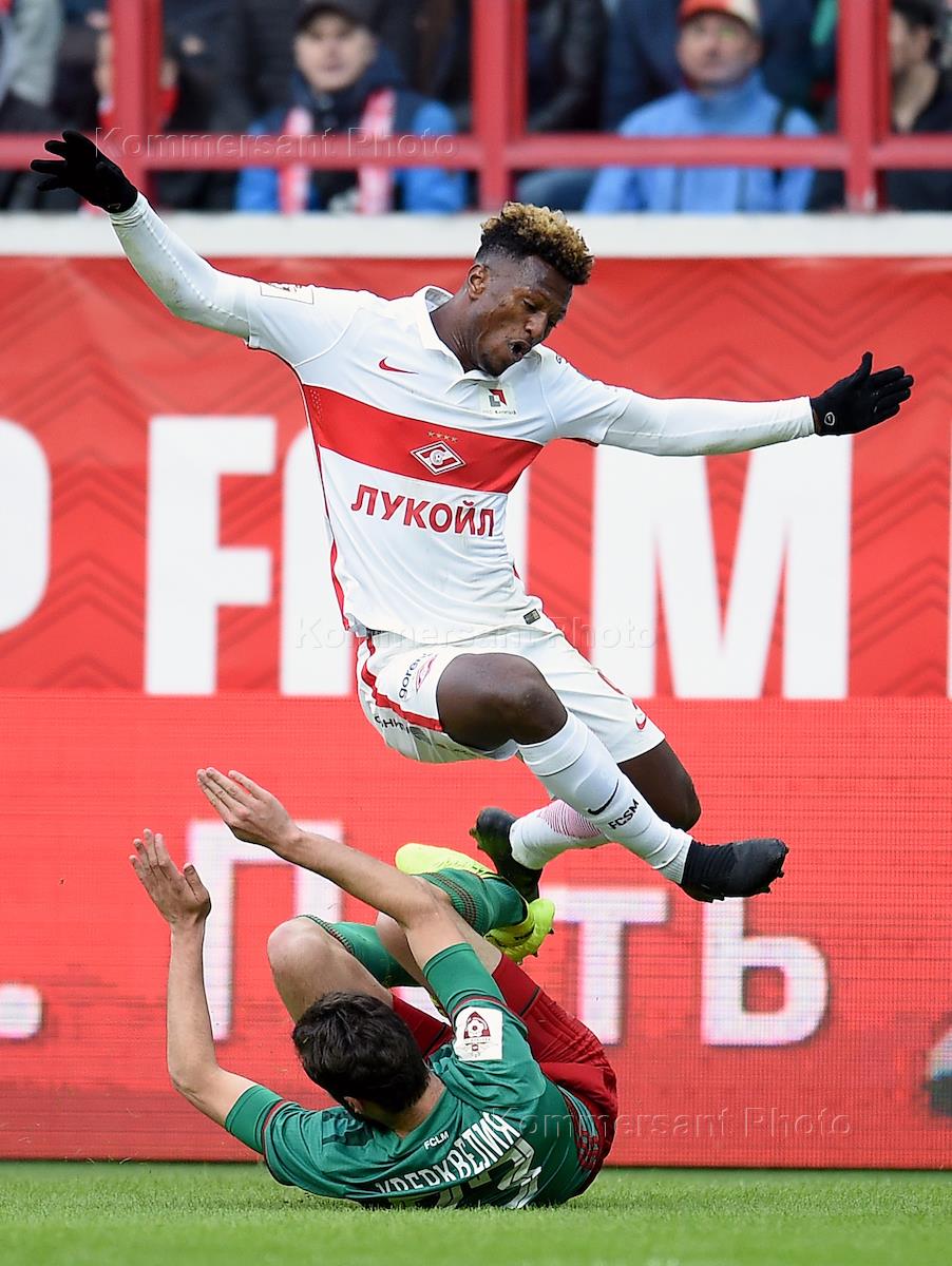 РОСГОССТРАХ Чемпионат России по футболу 2016/2017, 20 тур. Матч между командами "Локомотив" (Москва) и "Спартак" (Москва) на стадионе "Локомотив". Игрок команды "Спартак" Зе Луиш (справа) во время матча.