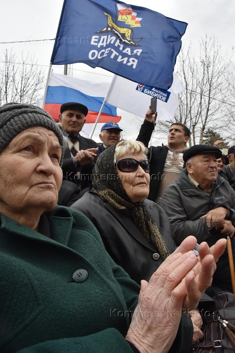 Митинг за вхождении Южной Осетии в состав Росии и объединение Северной и Южной Осетии в единую Республику Аланию на площади города.