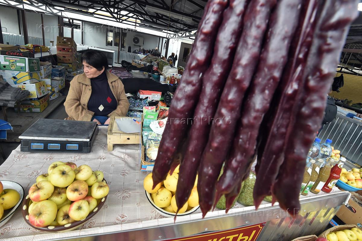 Виды Цхинвала. Городской рынок. Продажа овощей и фруктов.