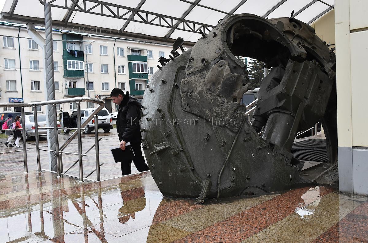 Памятник о событиях августа 2008 года, оторванная башня грузинского танка попавшая в крыльцо Дома профсоюзов.