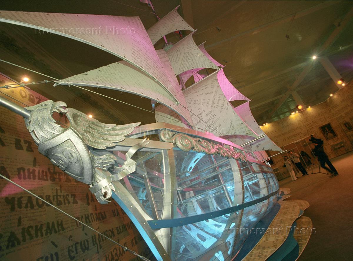 Ship with "red sails" at the "300 years of the russian journalistics - 300 years of the russian history" exhibition that was held in the "Manezh" exhibition hall.